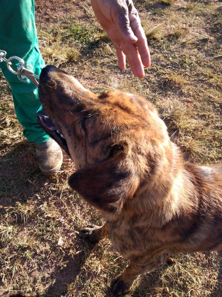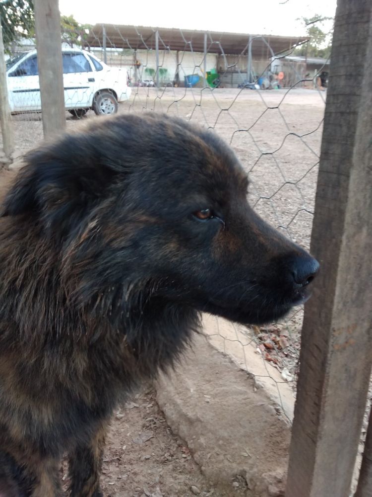 Esses são os dois irmãos: Tupã e Lupi (Tupã que na língua tupi -guarani significa trovão e Lupi que em latim tem o significado de lobo ). Não sabemos ao certo quanto tempo esses dois sobreviveram sozinhos. Não se tem certeza se chegaram perdidos de outro local ou se foram abandonados por antigos moradores do condomínio Solar da Serra. Tudo começou quando ficamos sabendo que havia um cachorro solto andando pelas ruas do condomínio e rasgando os lixos. Descobrimos que ele se abrigava em uma casa em construção. Passamos a levar comida e água até esse local e assim conhecemos esse lindo cachorro tigrado da língua roxa que batizamos de Tupã. Depois de alguns dias nos deparamos com outro cachorro junto com o Tupã, esse lobo da língua roxa que nos encantou com o seu jeito misterioso e que demos o nome de Lupi. Ficamos por vários meses alimentando e levando água para os dois ao mesmo tempo que procurávamos os donos. Nunca apareceu ninguém, mas alguns moradores da rua onde os dois estavam começaram a reclamar da presença deles. Chamaram até a zoonose para capturá-los mas não conseguiram nem chegar perto: esses dois conhecem cada esconderijo dentro desse vale onde se encontra o Solar da Serra e ninguém conseguia pegar eles. Foi aí que a Administração do condomínio pediu a nós que fizessemos o resgate e cederam um espaço para abrigar os dois e assim passamos a cuidar deles em um local seguro, sem ameaças daqueles que só enxergavam nessas vidas abandonadas um problema para ser resolvido. Hoje estão em um canil onde continuam sendo alimentados por nós e outra vizinha que se voluntariou para ajudar também com os passeios diários.Já estão vermifugados e com a primeira dose da vacina. Serão castrados e breve estarão disponíveis para adoção. São mestiços da raça chinesa Chow-Chow. São extremamente dóceis com pessoas. Inteligentes e disciplinados já passeiam de coleira e atendem a comandos. Não recomendado para viverem com outros cachorros machos. A adoção poderá ser conjunta ou não."