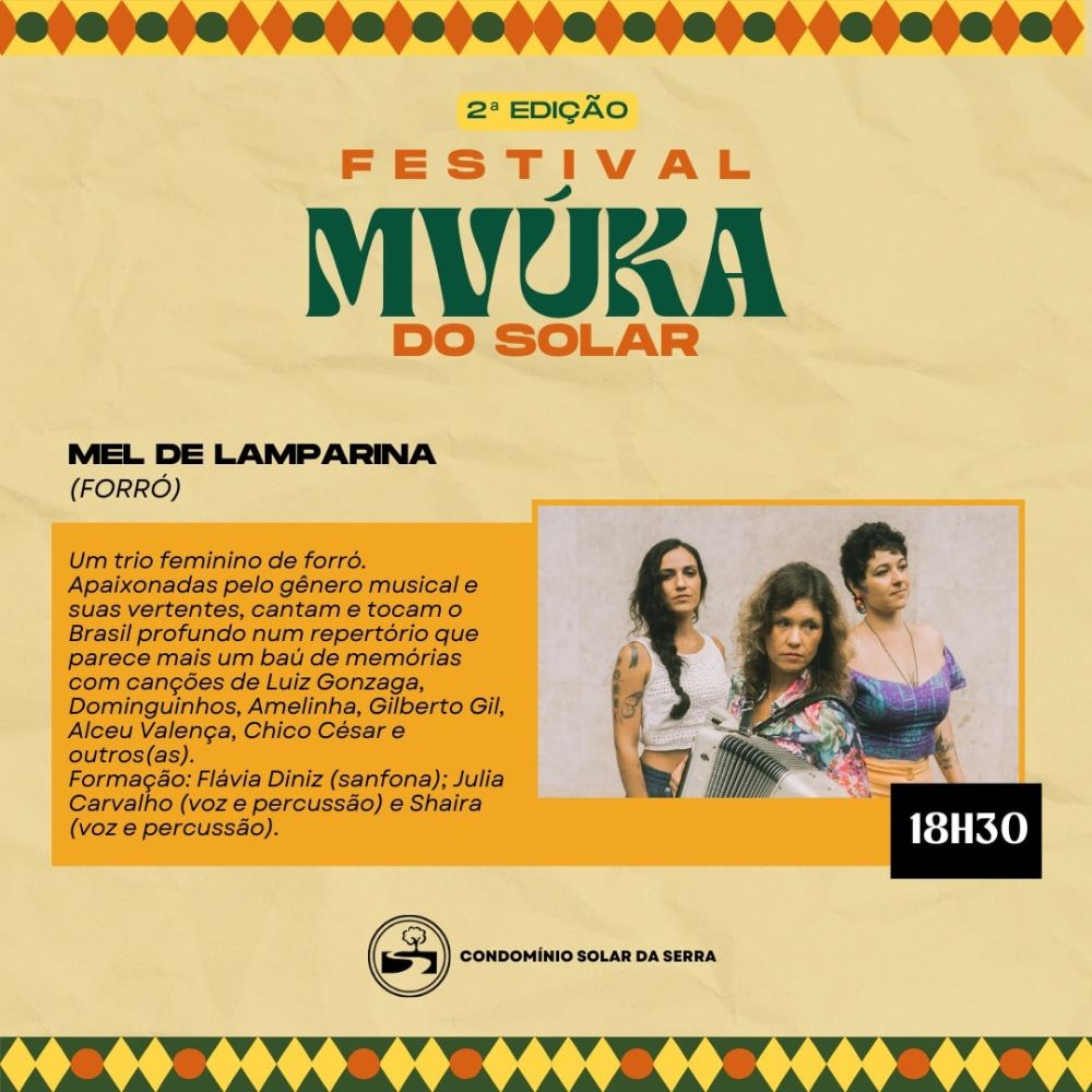 No dia 06 de setembro, sábado, o Clube Solar será palco de uma grande celebração de lazer, cultura e integração entre condôminos, convidados e amigos. Inspirado na palavra Mvúka, de origem banta e língua quicongo — que significa uma aglomeração ruidosa como forma de lazer e celebração — o festival promete uma noite inesquecível.