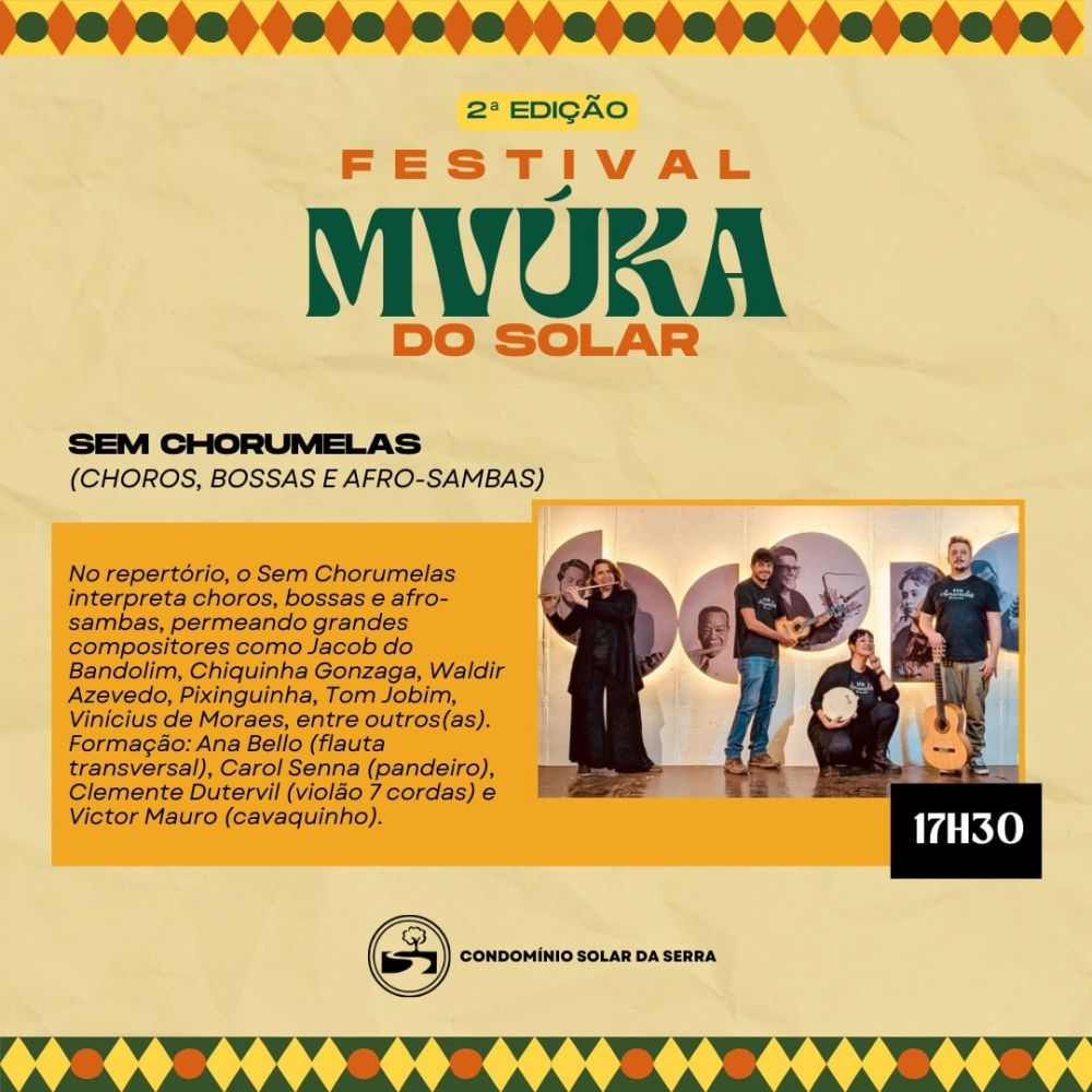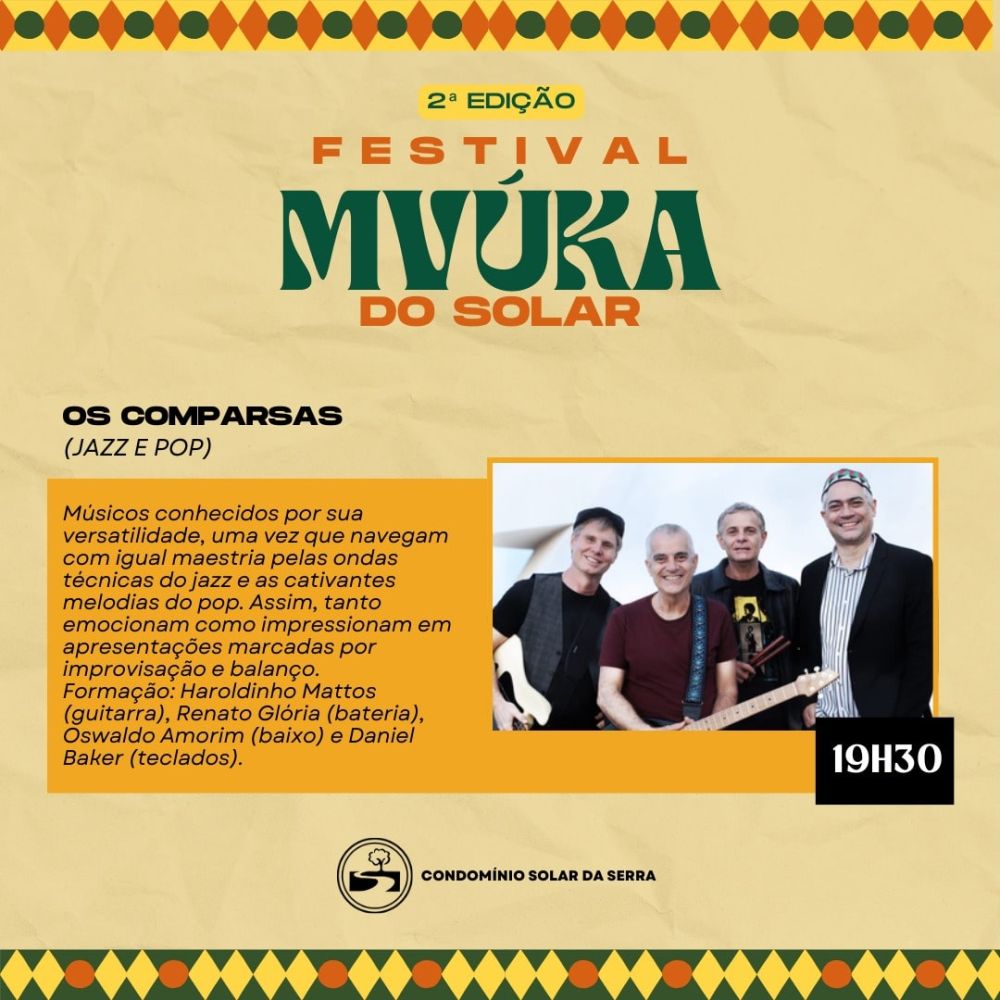 No dia 06 de setembro, sábado, o Clube Solar será palco de uma grande celebração de lazer, cultura e integração entre condôminos, convidados e amigos. Inspirado na palavra Mvúka, de origem banta e língua quicongo — que significa uma aglomeração ruidosa como forma de lazer e celebração — o festival promete uma noite inesquecível.